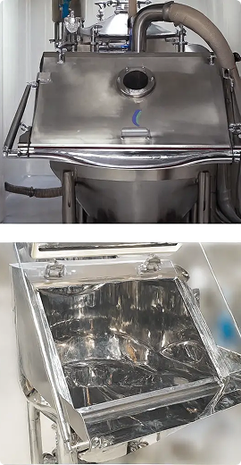- Optional slide gate valve at material transfer ports for controlled loading/unloading.